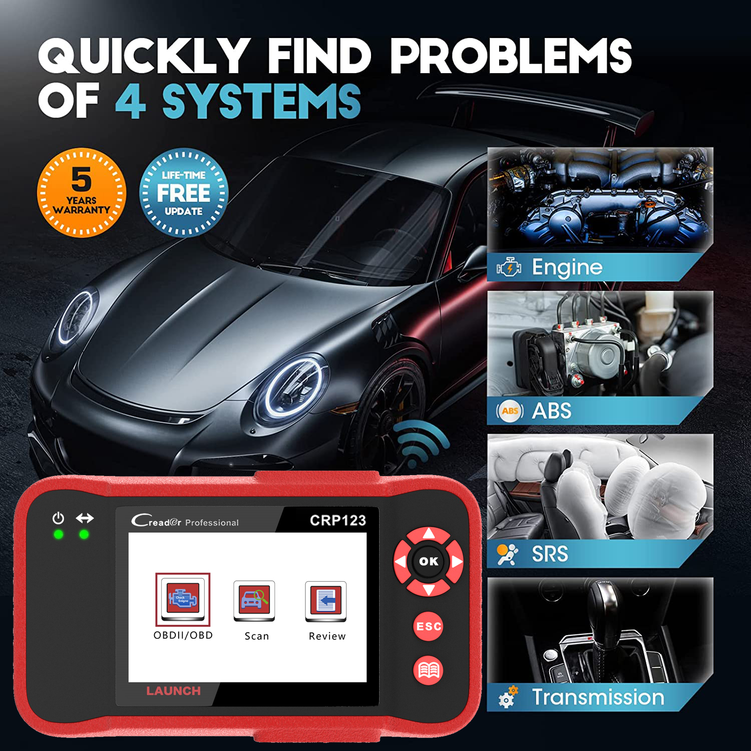 Launch CReader Professional 123 main functions do not only include OBD / EOBD standard protocol diagnosis, but also cover professional diagnostic software for multiple models which can perform comprehensive diagnosis on four main ECU’s (ENG\ABS\SRS\AT) of vehicle.
