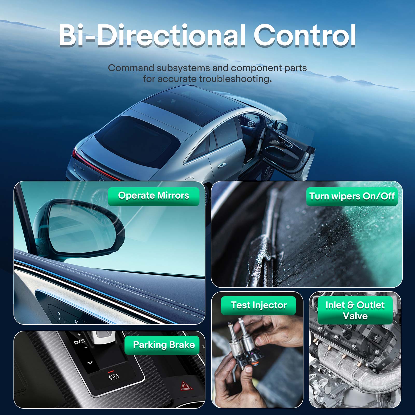 - 43+ special functions:A/F Reset, Brake Reset, Oil Reset, SAS Reset, Battery Reset, ABS Bleeding, Elec. Throttle RLRN, TPMS Reset, DPF Regen, AC System Relearn/Initalization, ADBlue Reset, AFS Reset, Clutch Matching, Compressor Test (EV), Coolant Bleed, Engine Power Balance Monitoring, DCDC Test (EV), Coolant Replacement…