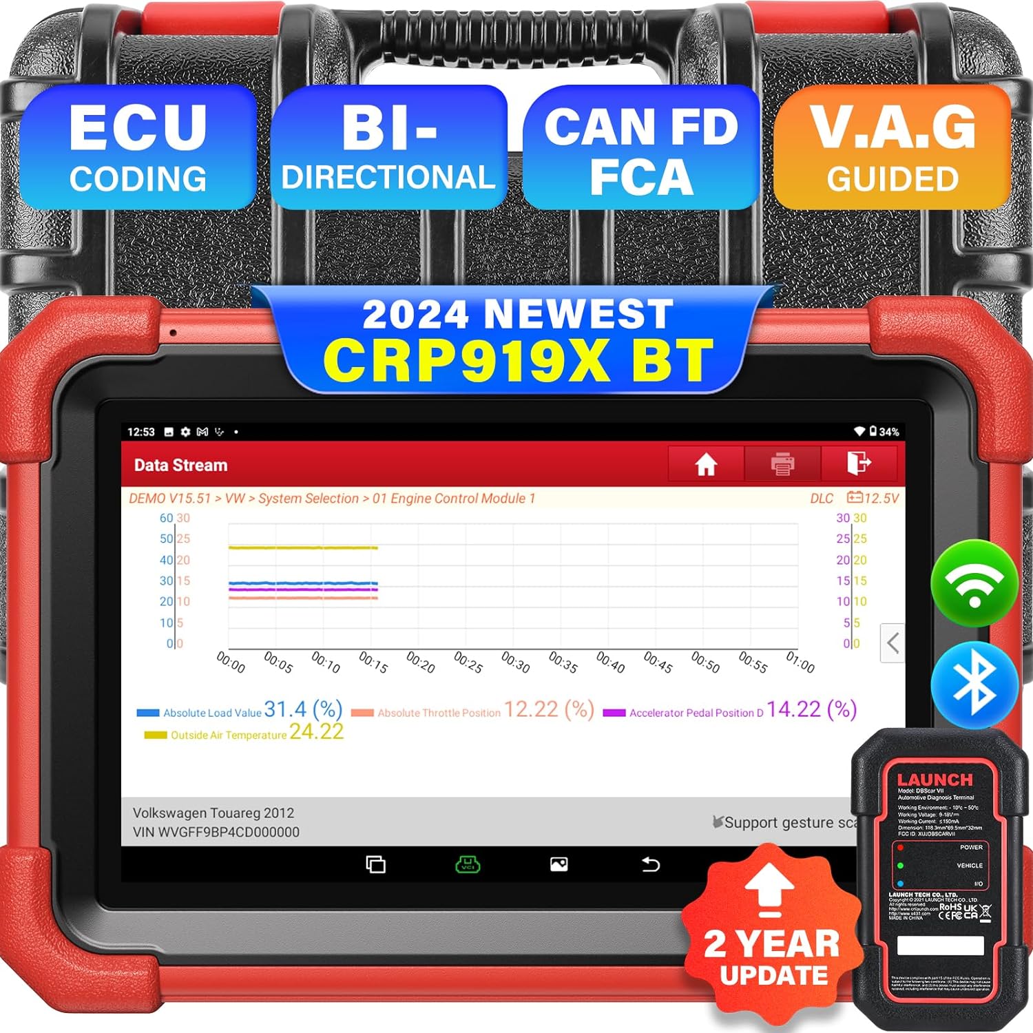 LAUNCH X431 CRP919X BT OBD2 Scanner 2025 Bidirectional Diagnostic Tool, CANFD&DOIP Support 2Yrs Update, Wireless Diagnostic with DBScar VII, FCA AutoAuth, VAG Guided, ECU Coding