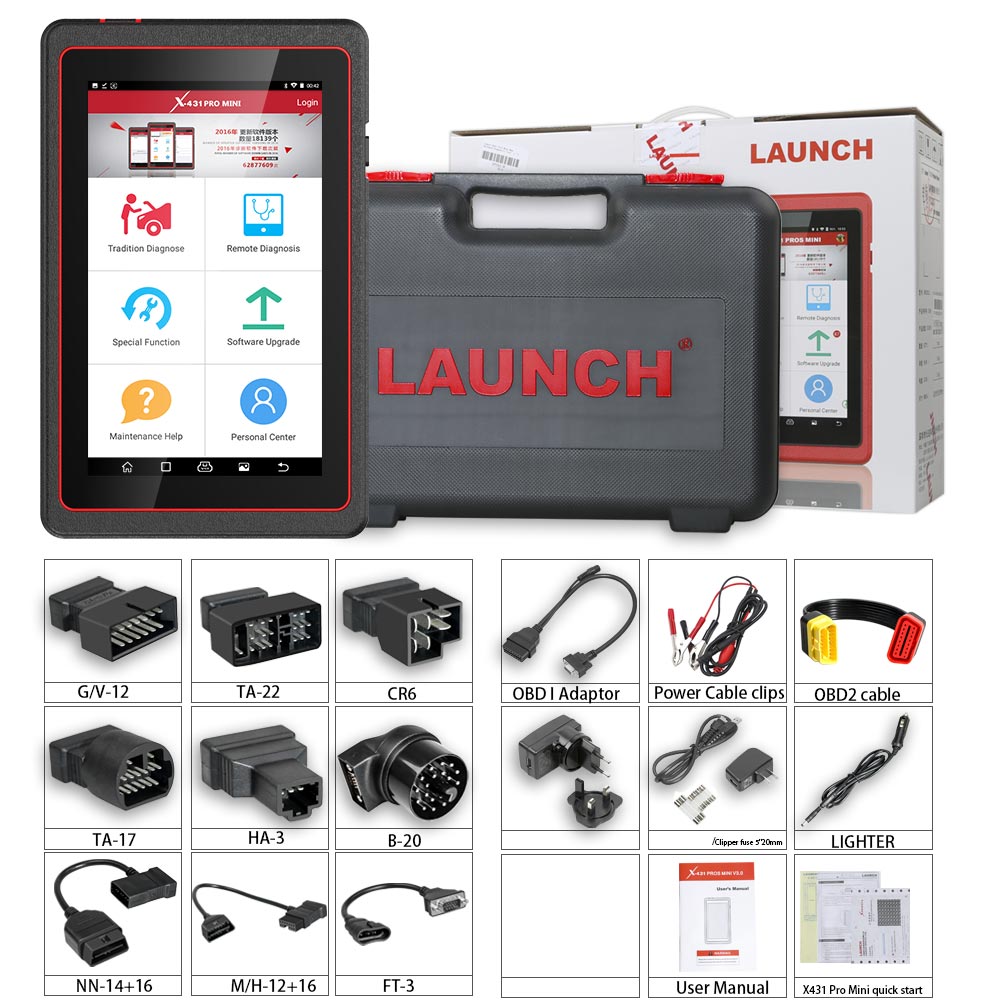 Launch X431 PRO MINI achieves full car model and full system vehicle trouble diagnosis, which includes Reading DTCs, Clearing DTCs, Reading Data Stream, Actuation Test , Special Functions and matching Engine system, steering system, SRS system, Security system, Air conditions system, brake system, battery system, EPB system, TPMS system, Chassis system, ABS system, transmission system.