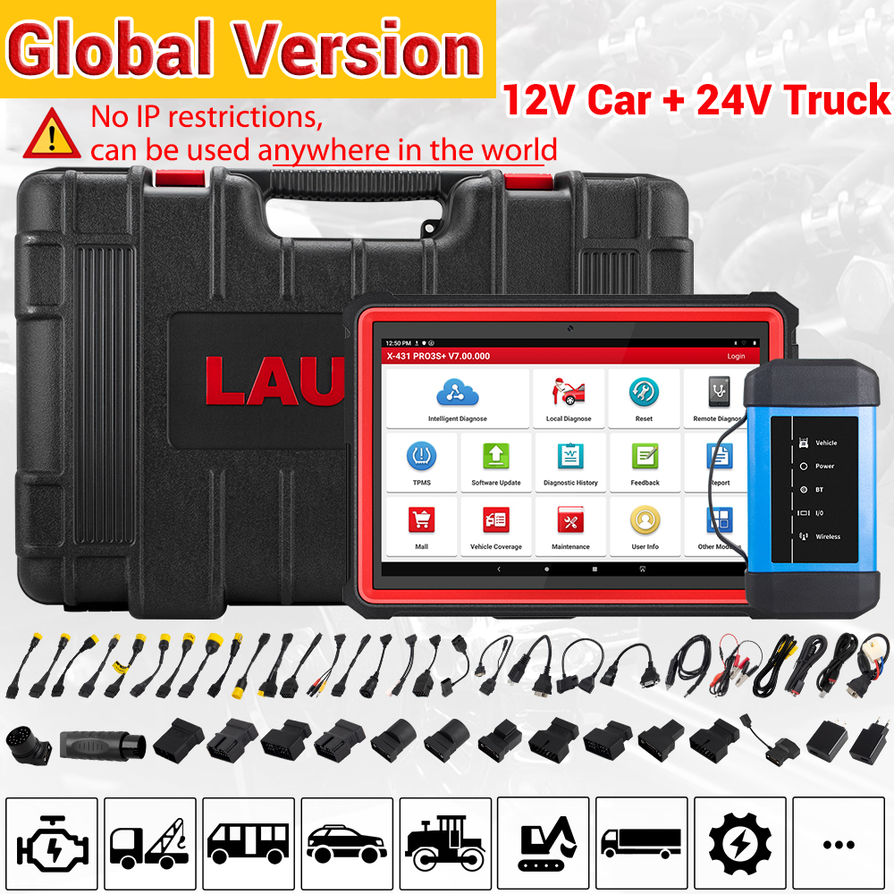 LAUNCH X431 Pro3s+ model coverage from America, Europe, Asia (including cars, SUVs, minvans, 12v light-duty trucks, 12V & 24V gasoline cars and diesel cars)