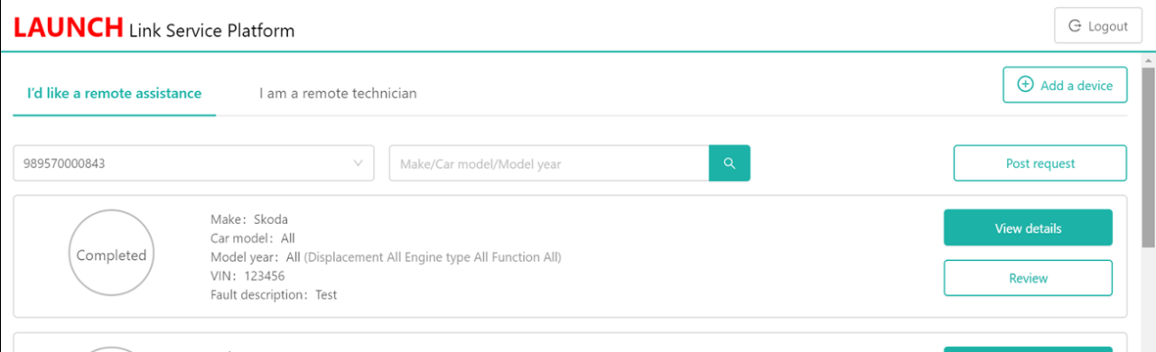 SmartLink C user can post the remote diagnosis request on this platform. SmartLink B user can see the requests from their clients and accept the request to do the remote diagnosis.